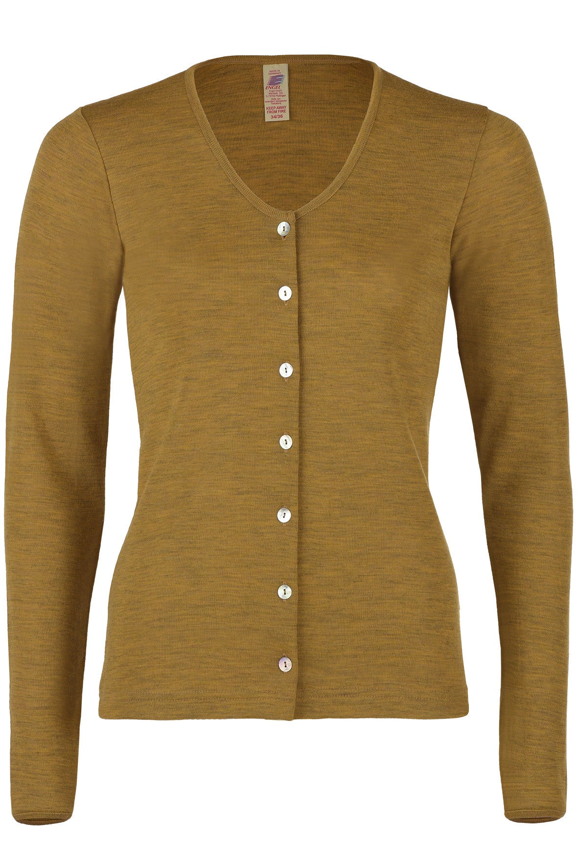 Schöner Cardigan aus Bio-Merinowolle. Farblich abgesetzte Knopfleiste mit Perlmuttknöpfen. Zeitlose Farben. Angenehm weich. Sehr hoher Tragekomfort.